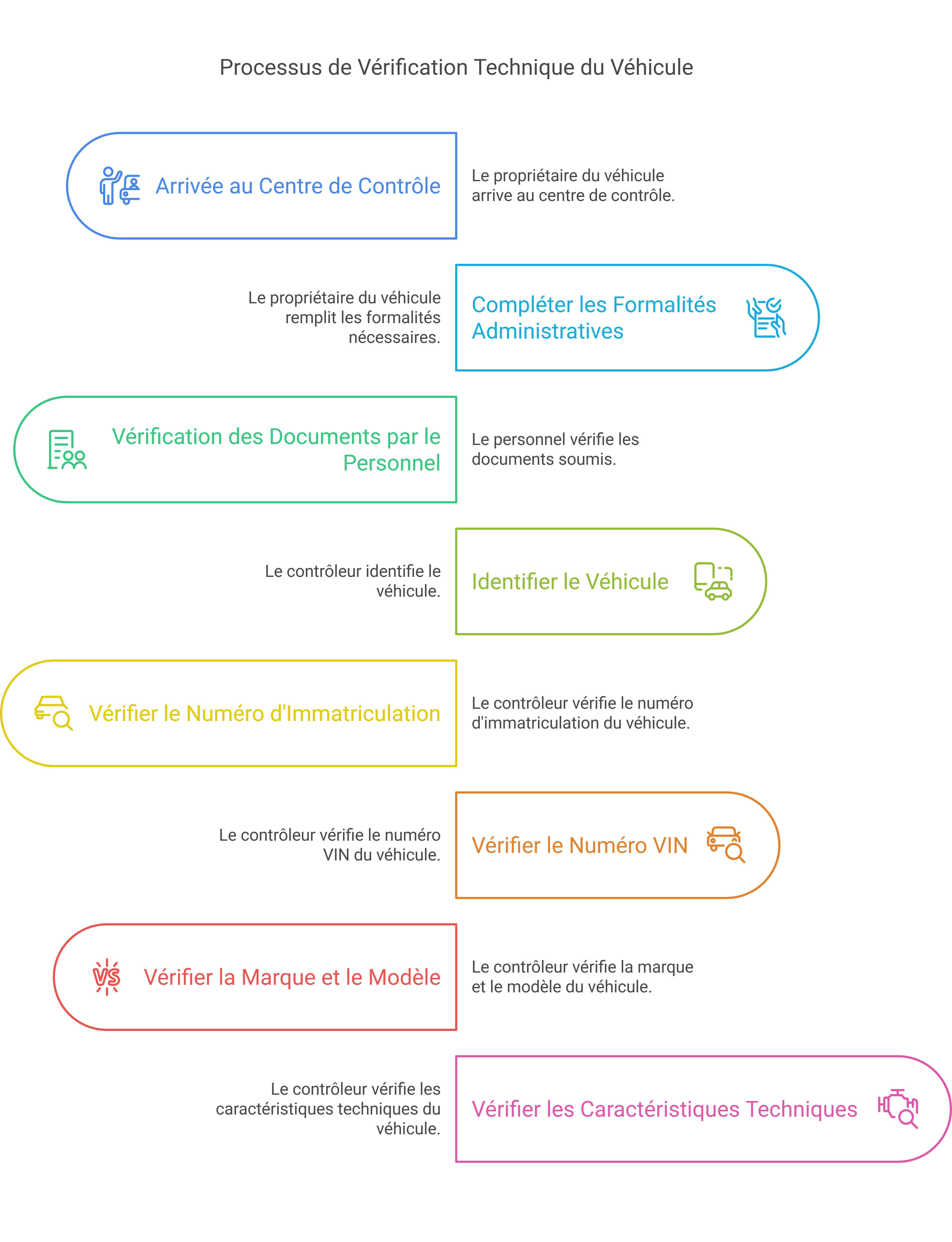 Un contrôle technique dure généralement entre 30 et 45 minutes. N'oubliez pas d'apporter le certificat d'immatriculation original (ex-carte grise) lors de votre rendez-vous.